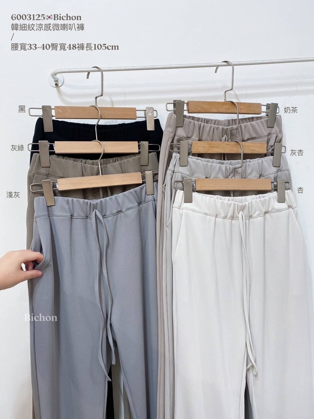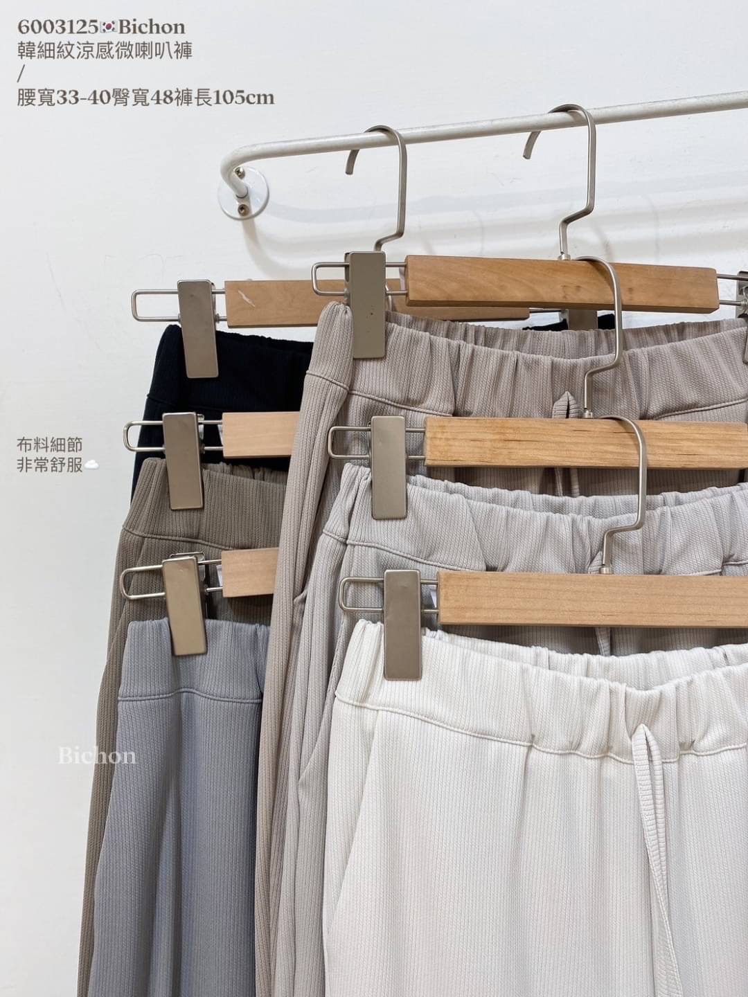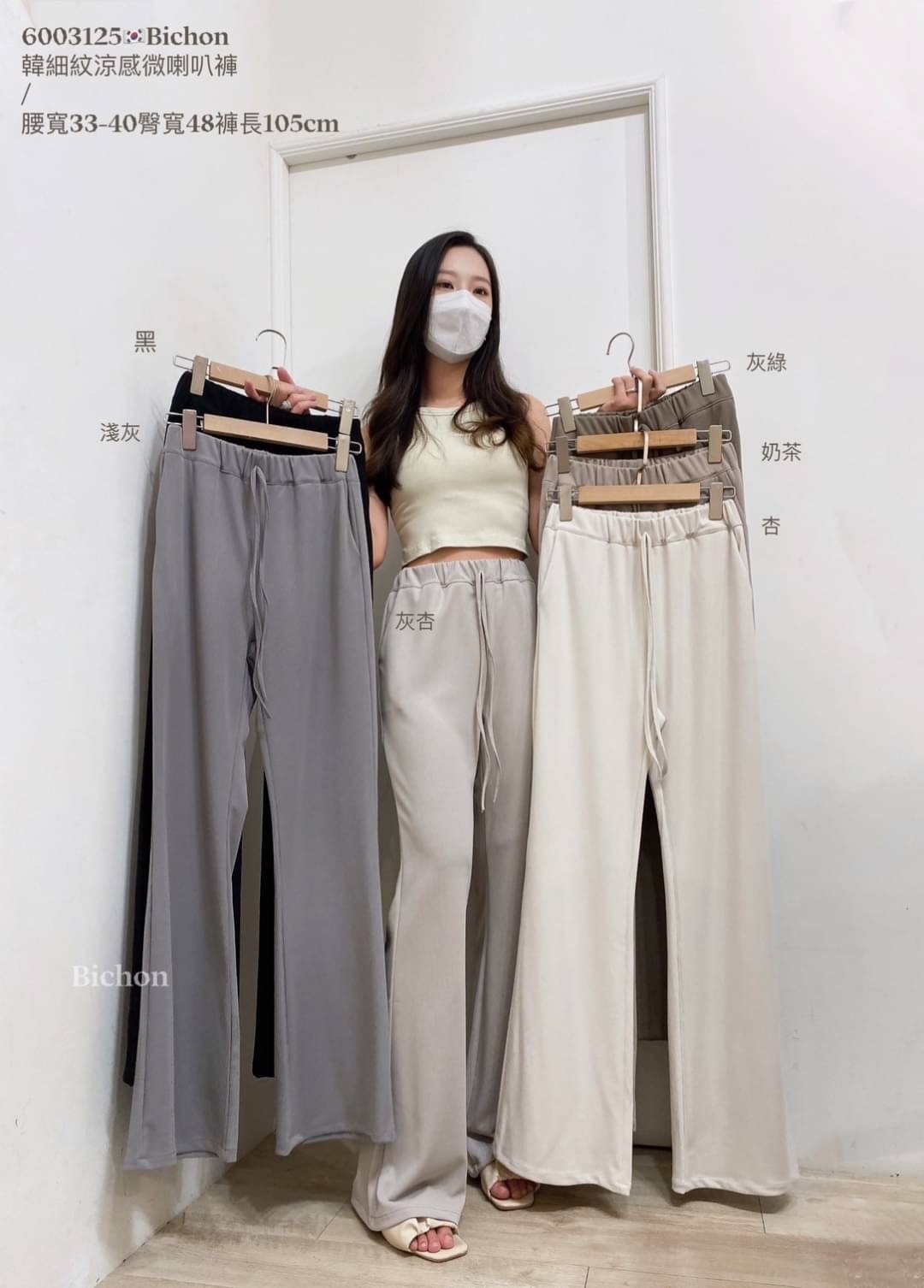 - 尺寸:全腰圍鬆緊、兩側口袋腰寬33-40臀寬48褲長105cm